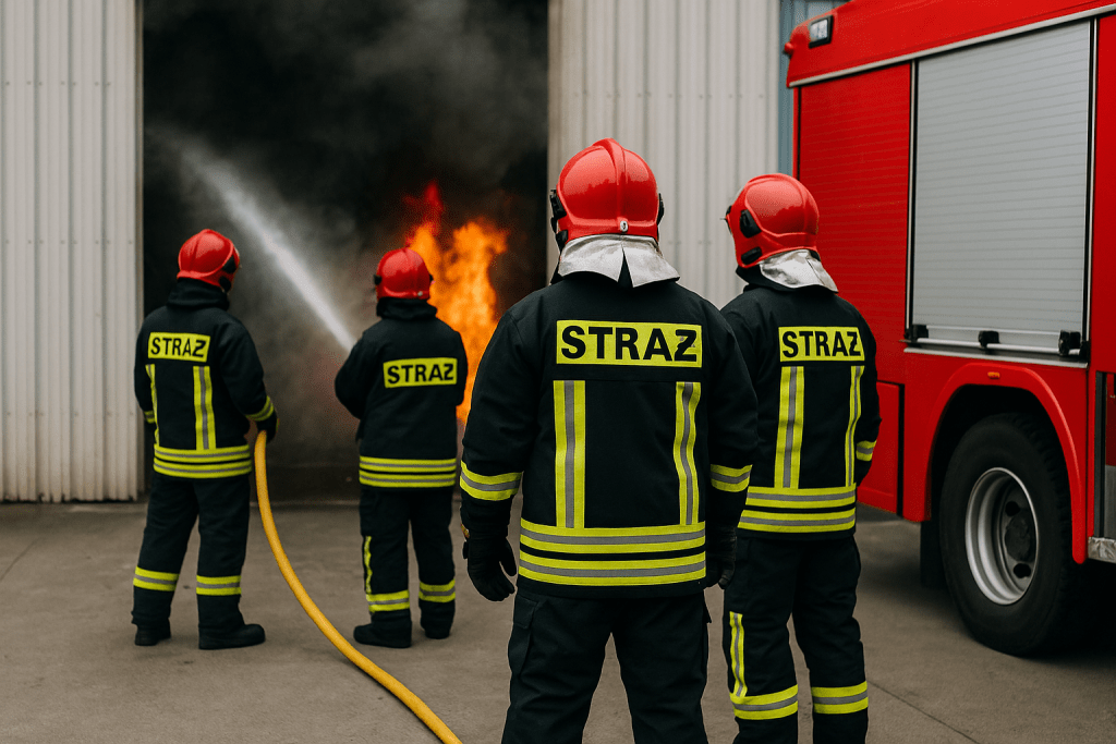 Oferujemy profesjonalne zabezpieczenia przeciwpożarowe obiektów i imprez — z udziałem pełnego zastępu strażackiego i wozu bojowego. Zapewniamy ochronę podczas awarii systemów PPOŻ, prac niebezpiecznych i wydarzeń publicznych.